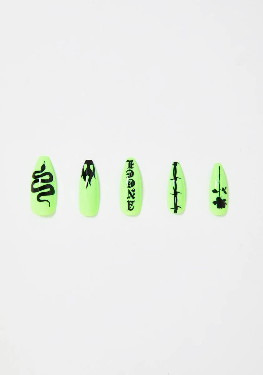 cuz u make bein bad look sooooo good, bb! Give âem something to talk about wearing these coffin shaped press on acrylic nails with tattoo designs on âem that come with a cuticle stick, nail file and nail glue.