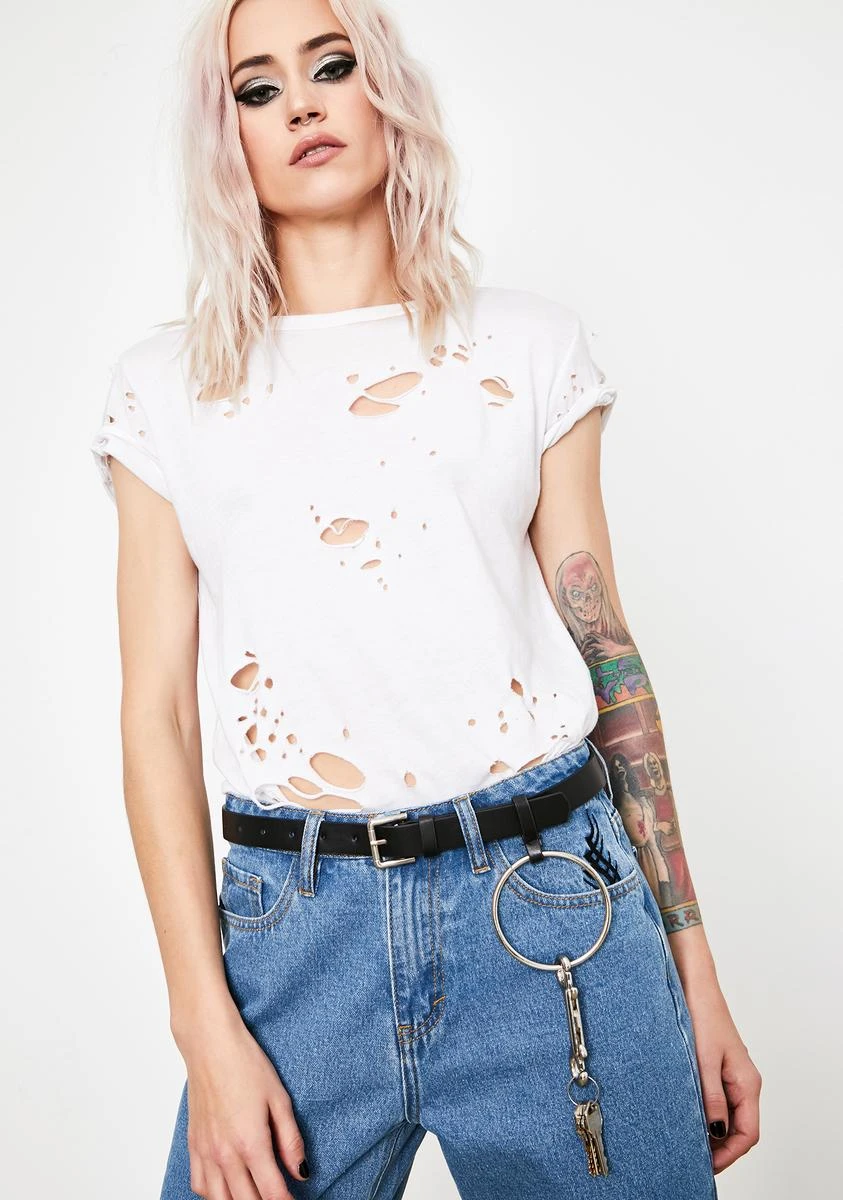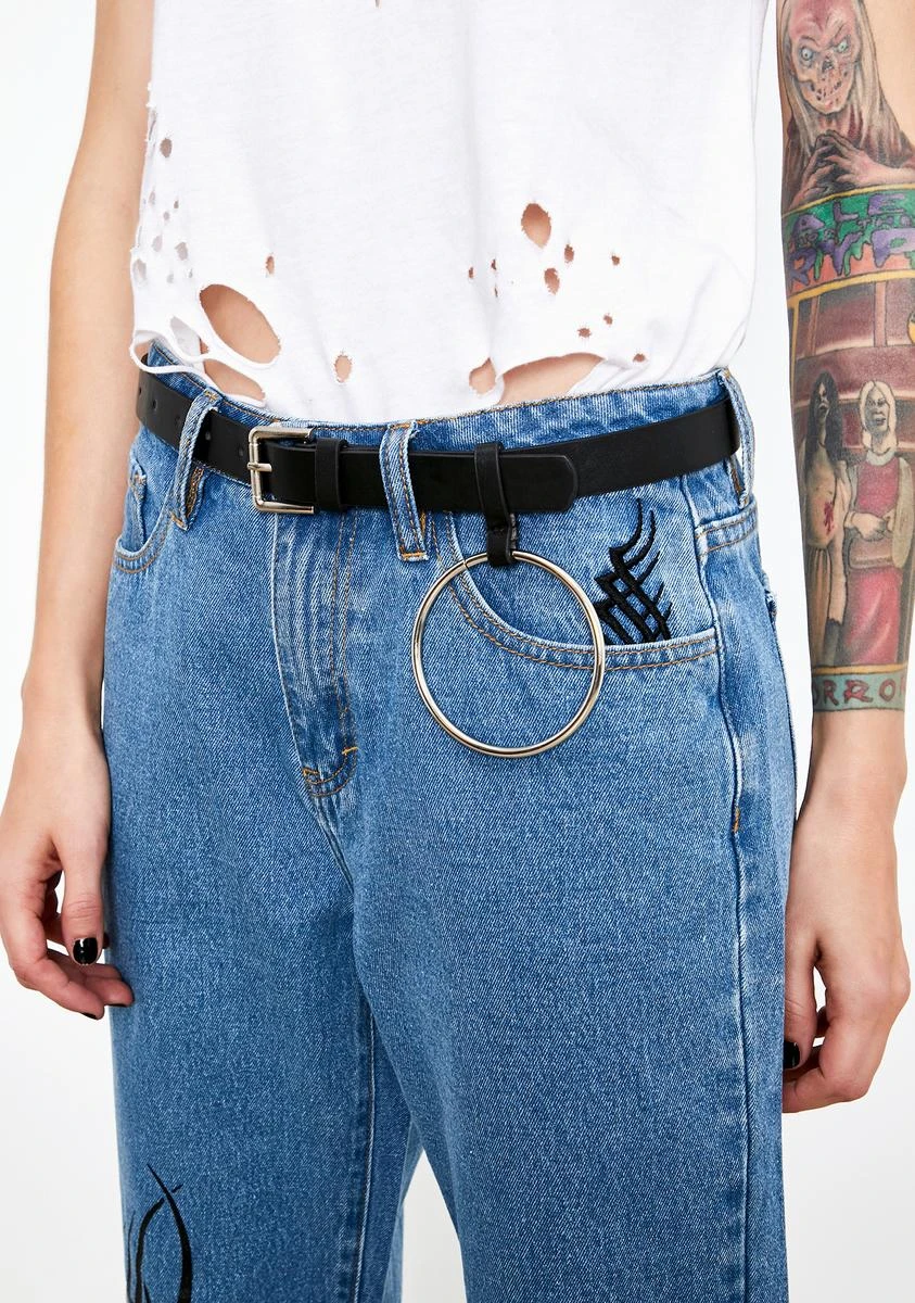 cuz ur alwayz one to hold a grudge, babe. Give âem something to talk aabout in this vegan leather buckle belt with a large O-ring hanging from the front.
