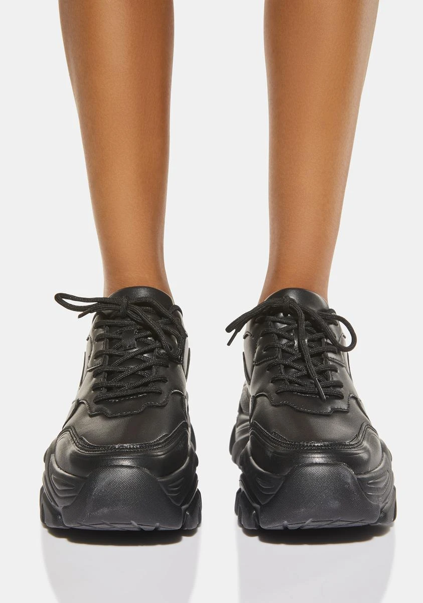 cuz it’s the best policy. These sneakers have a vegan leather design, lace up closures, and textured platform soles.