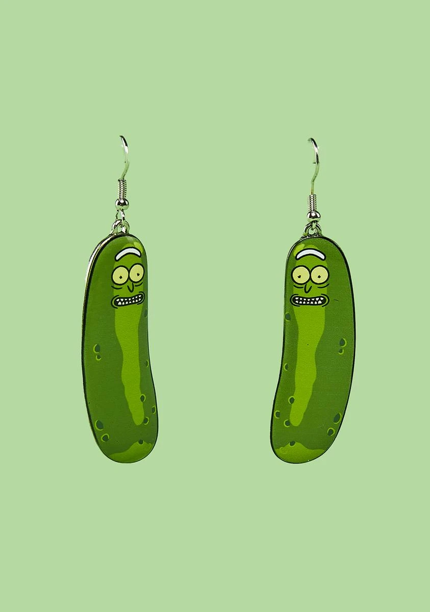 can’t you turn yourself back into human form? These dangling earrings have anxious-looking enamel Pickle Rick pendants and classic hook backs.