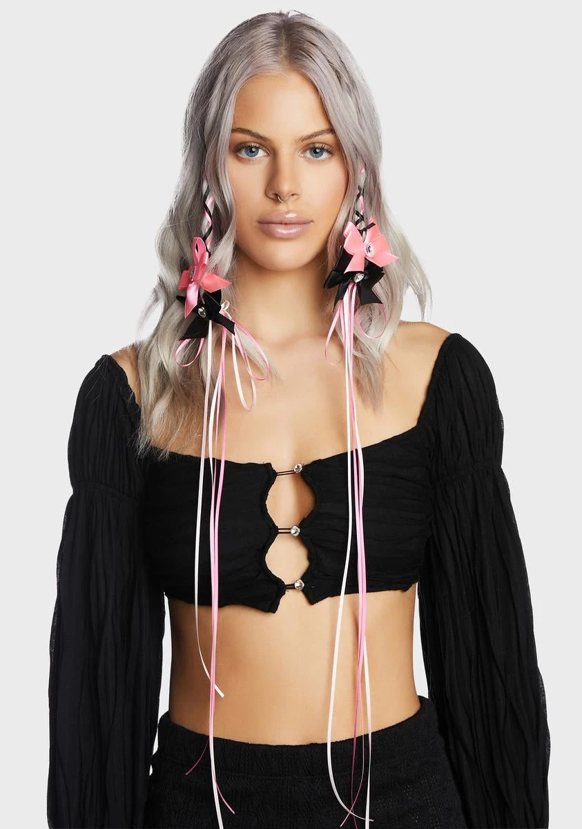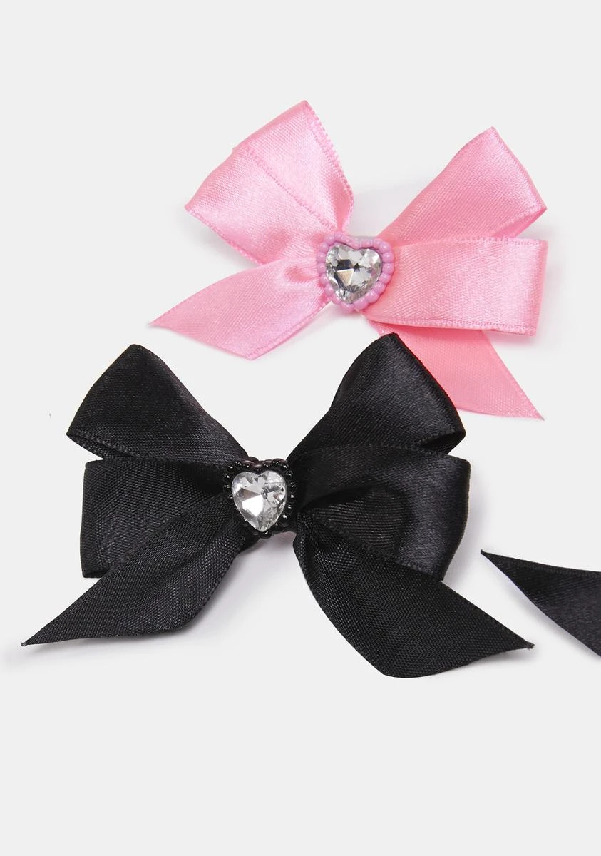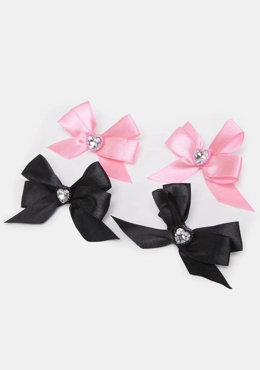 wanna unwrap me? This 4-piece hair clip set has bow appliques and heart-shaped gems.
