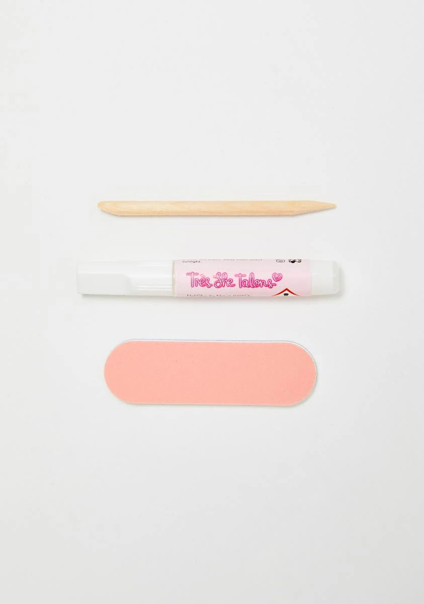 will give âem bubble gum ecstasy. Give âem fairy glam in this press-on acrylic nail kit that have a sweet iridescent ombre glitter, a natural shape Nâ curved nail to have ya lookinâ cuter than eva. Trim ’em down however you want with the cuticle stick, nail file and nail glue that comes with it.