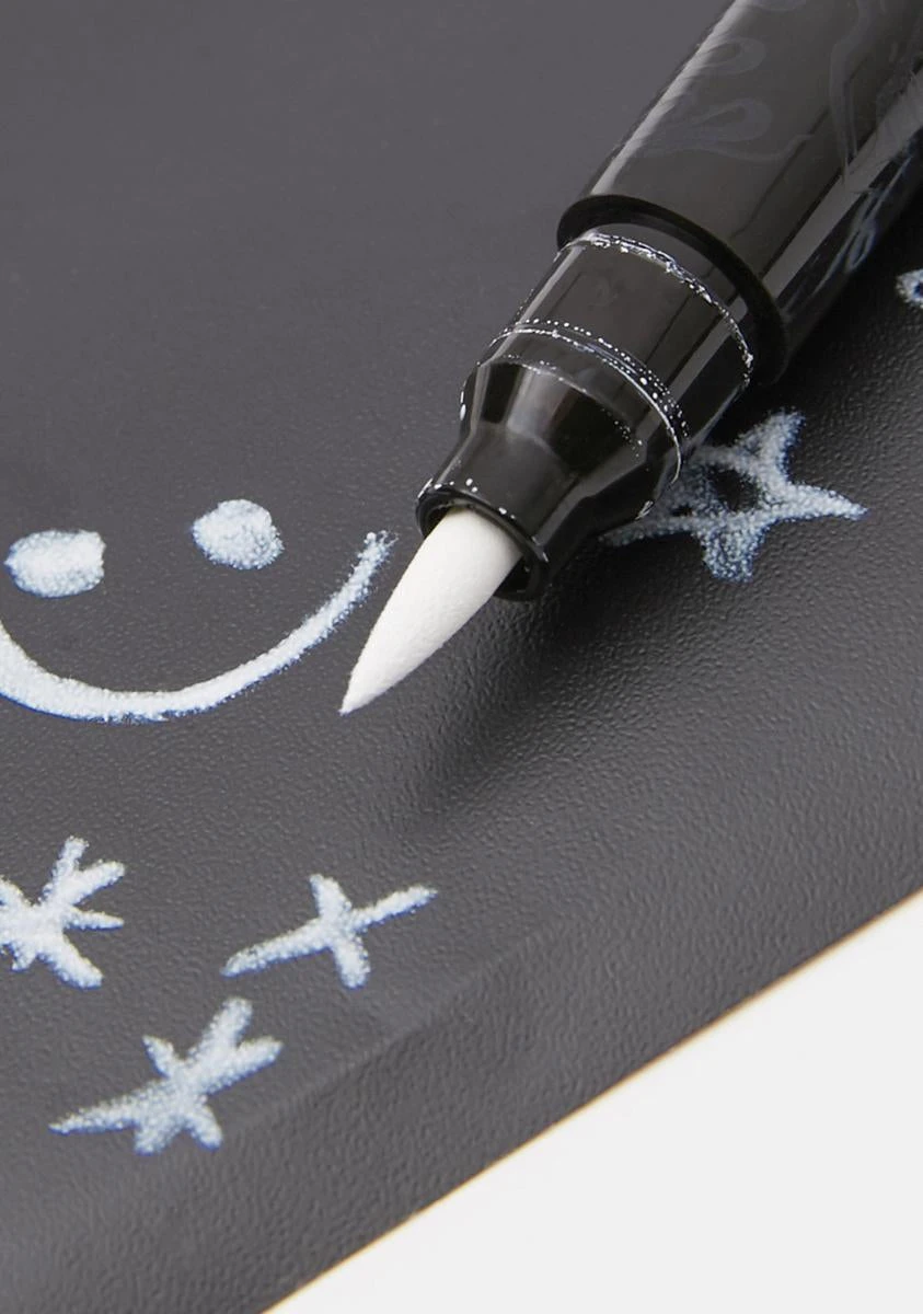 has a felt tip end to create sharp wings and a stamp pen in the shape of a star on the other end.