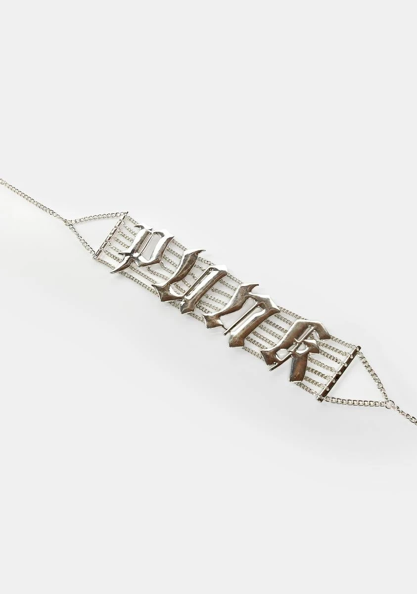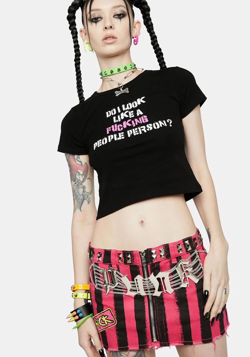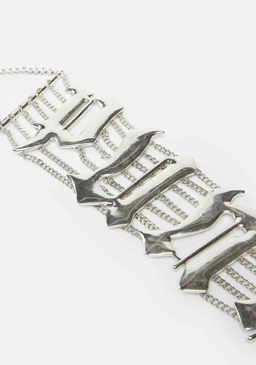 cuz you’re feeling a bit rebellious. This belt has a metal chain construction, “punk” text details, and a clasp closure.